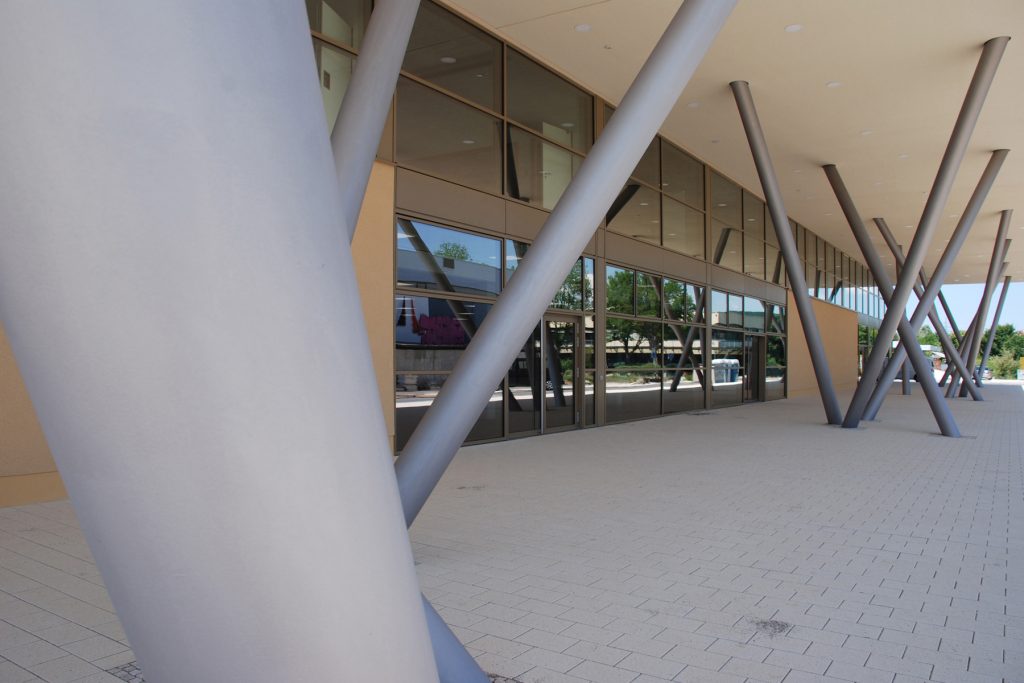 Wortfelder sorgen in der Bibrishalle für Orientierung und Identität. Sie weisen auf die zentralen Funktionseinheiten der Mehrzweckhalle hin. Die auf den Mauern in den Foyers aufgedruckten Leitbegriffe Sport, Fitness, Kultur und Zuschauer werden von einer Wolke aus Worten umrahmt.